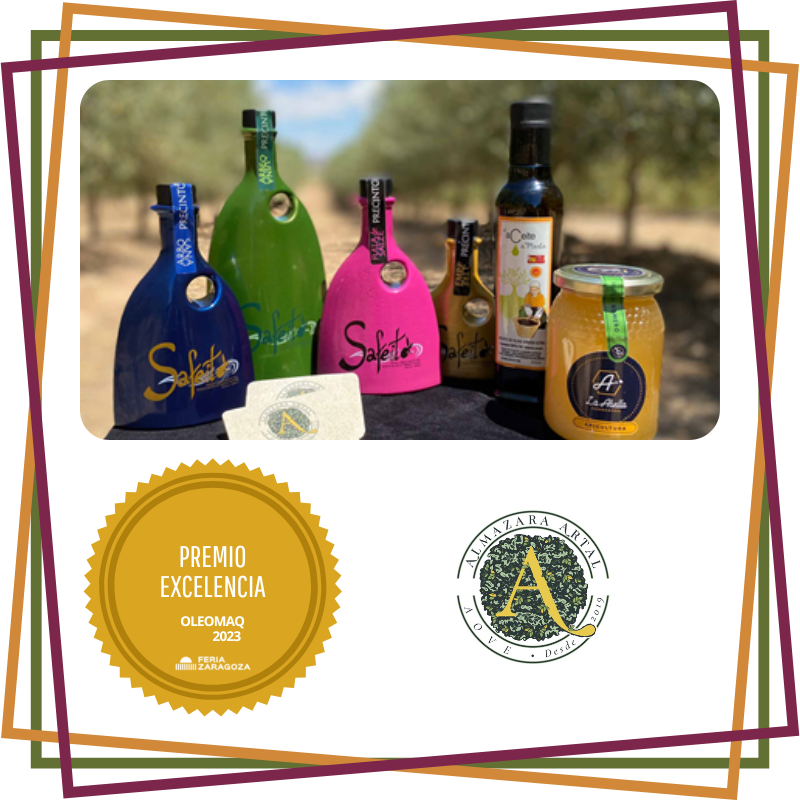 Almazara Artal comenzó su andadura a finales de 2019, era el último paso de un proyecto familiar que se llevaba fraguando casi 20 años con la plantación de olivos (nuevas plantaciones de superintensivo) y recuperación de algunas fincas familiares en el Bajo Aragón. La elaboración de aceite se hace casi en su totalidad de fincas propias de olivar (entorno a las 500 hectáreas), con 5 variedades diferentes: Arbequina, Empeltre, Fulla de Salze, Arbosana y Sevillana de Caspe. Su apuesta es por la calidad y la elaboración de Aceite de Oliva Virgen Extra, y en su cuarta campaña ya han obtenido doce premios, algunos de ellos internacionales. Destacan por la economía circular y su plena reconversión a ecológico, teniendo como meta la venta del máximo embotellado y poder exportar lo máximo posible, dándole el valor real que tiene el producto y llevando un trocito Aragón a la mesa. Disponen de dos marcas propias de AOVE: El aceite de Marta y Safeito (marca gourmet de cosecha temprana y ecológica en reconversión). Además, realizan catas de AOVE para grupos y oleoturismo, dando a conocer su tierra y lo que sale de sus frutos. Disponen de un equipo que les permite controlar desde el campo al embotellado y distribución, por lo que tienen pleno control sobre todo el proceso. Su Gerente y Maestra de Almazara es Aranzazu Garin Ferruz, y sus productores y propietarios son Ángel José Artal Tomás y María Pilar German Laborda.