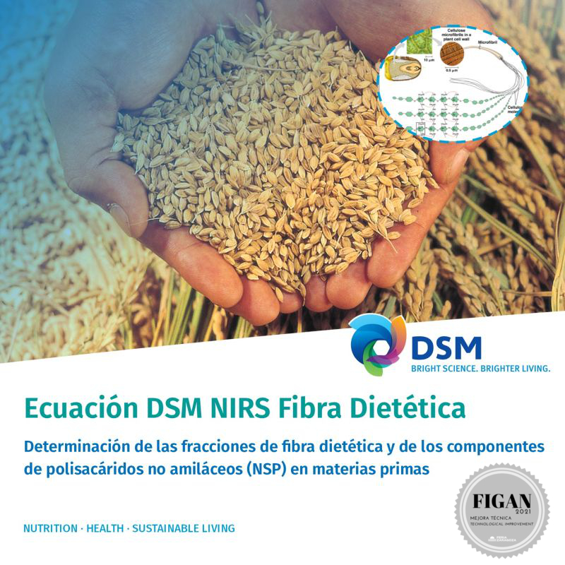 |  DSM NUTRITIONAL PRODUCTS IBERIA, S.A. |  ESPAÑA | DETERMINACIÓN DE LAS FRACCIONES DE FIBRA DIETÉTICA Y DE LOS COMPONENTES DE POLISACÁRIDOS NO AMILÁCEOS (NSP) EN MATERIAS PRIMAS MEDIANTE LA TECNOLOGÍA NIRSSe trata de una nueva calibración NIRS que permite una formulación más precisa de los piensos en lo que se refiere a su fracción de fibra dietética. Con ello se logra un equilibrio global mejor. |