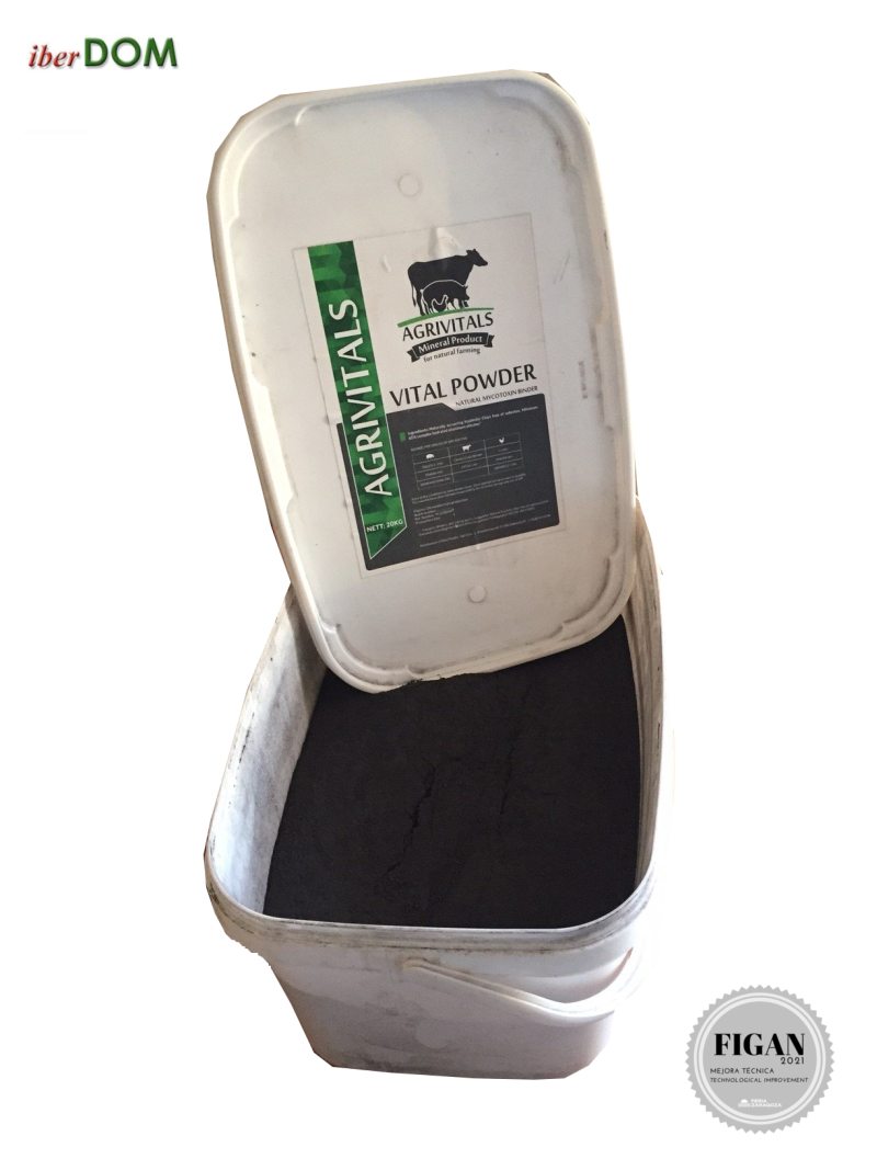 |  IBERDOM - ANDERS EMICH |  ESPAÑA | VITAL POWER - ADITIVO ALIMENTICIO 100% NATURALAditivo alimenticio 100% natural en base a un compuesto de silicato de aluminio y carbono, que regula los problemas digestivos y mejora la absorción de nutrientes en animales de granja. |