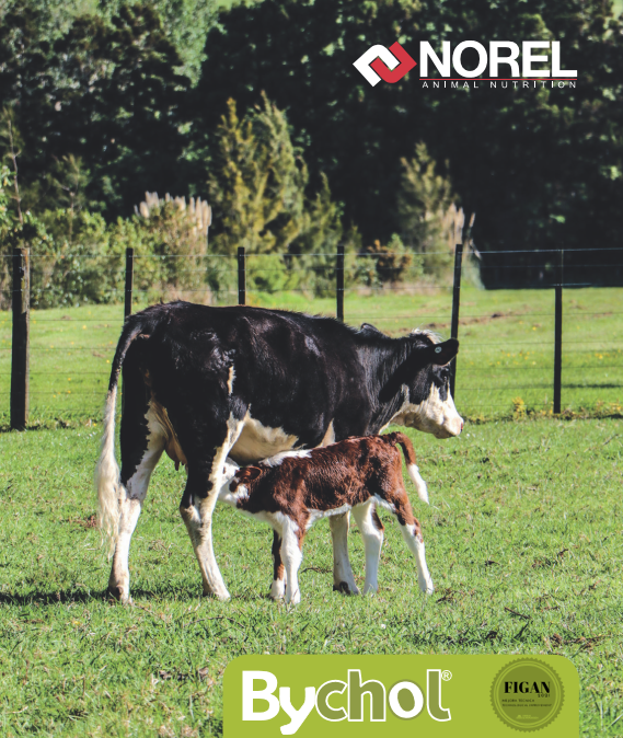|  NOREL S.A. |  ESPAÑA | BYCHOL®Complemento o fuente de cloruro de colina protegido contra degradación ruminal a través de una matriz de estearina de palma saturada; que ayuda a la movilización de los ácidos grasos y triglicéridos. |