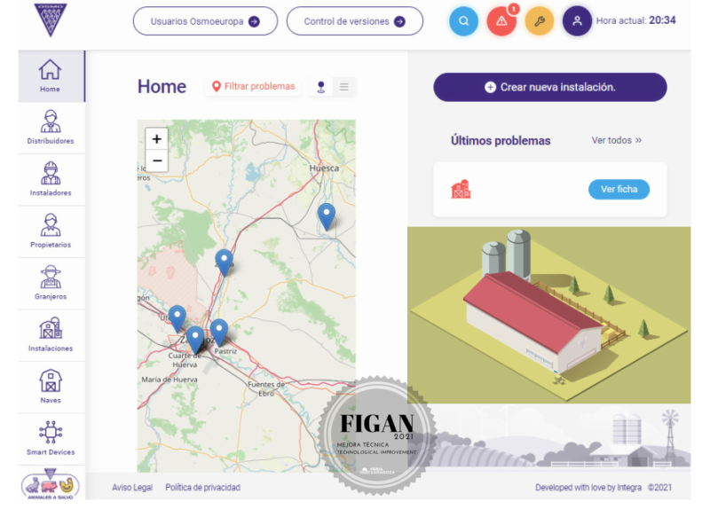 |  OSMOEUROPA |  ESPAÑA | SISTEMA INTEGRAL DE CONTROL Y GESTIÓN DE LAS EXPLOTACIONES DE GANADO PORCINOSistema integral de control de los equipos tecnológicos de una granja de ganado porcino mediante software específico de gestión integral. |