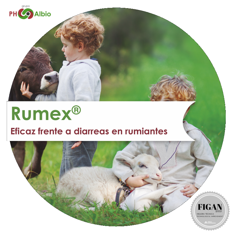 |  ALBIO FERM, S.L. - GRUPO PH-ALBIO |  ESPAÑA | RUMEXAditivo basado en fitoquímicos que permite el control eficaz de diarreas provocadas por coccidios y bacterias como E. coli y Salmonella en rumiantes. Contribuye a una producción más eficiente y sostenible, facilitando la reducción del uso antibióticos y coccidiostatos. |