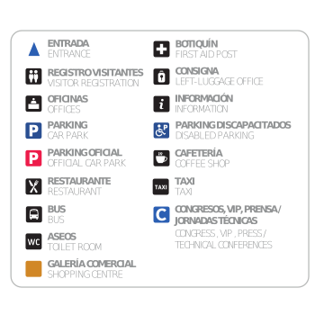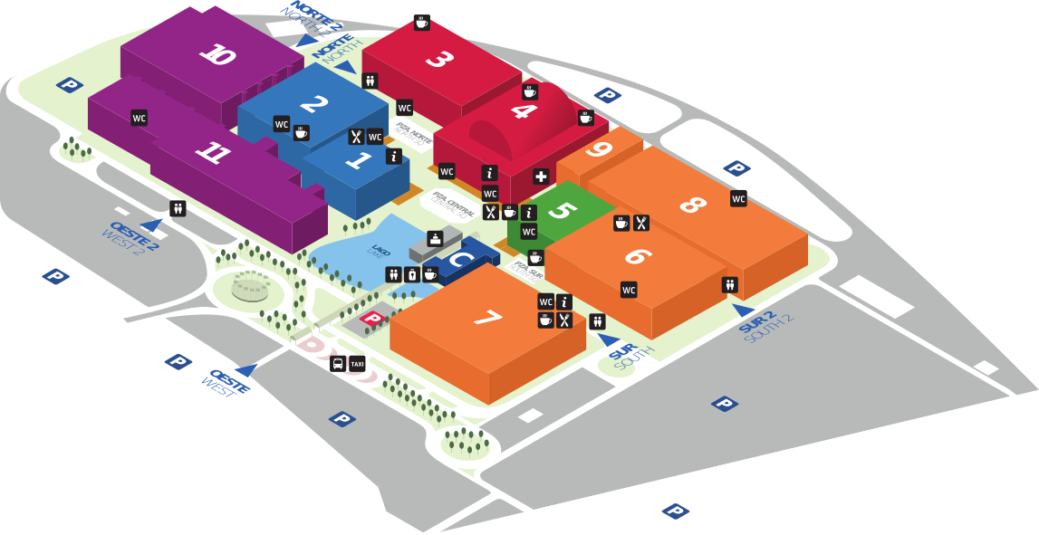 Pulse sobre el pabellón deseado para ver el detalle de los expositores o sobre el edificio de congresos para ver el detalle de las salas de las jornadas técnicas.